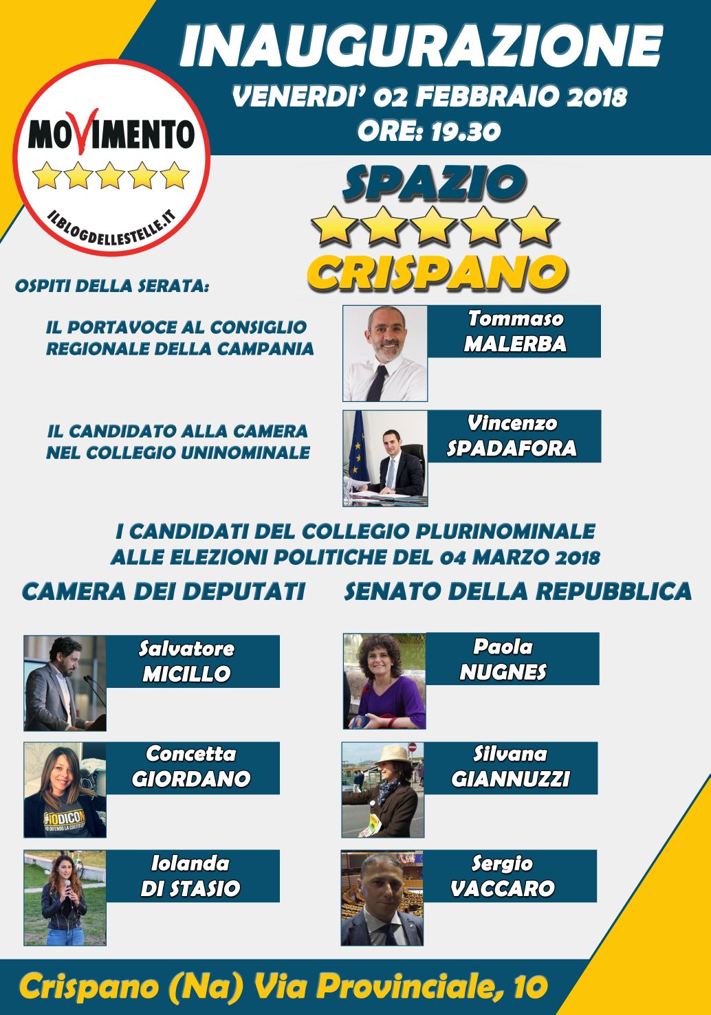Al suo fianco ci sarà il portavoce del MoVimento 5 stelle al Consiglio Regionale della Campania Tommaso Malerba, insieme ai candidati alla Camera: Conny Giordano, Salvatore Micillo e Iolanda De Stasio e quelli al Senato: Paola Nugnes, Sergio Vaccaro e Silvana Giannuzzi.