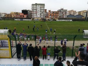 La squadra di Mister La Manna, poi, sfiora il raddoppio con Esposito al 42′ e lo realizza al 50′ con Cafaro: palla che arriva in area a Simonetti che, coperto da un difensore, decide lucidamente di scaricare al liberissimo numero 7 viola che insacca da pochi passi. Il resto del match è pura accademia per i padroni di casa che calano il tris all’88’ con il neo entrato Spoleto.
