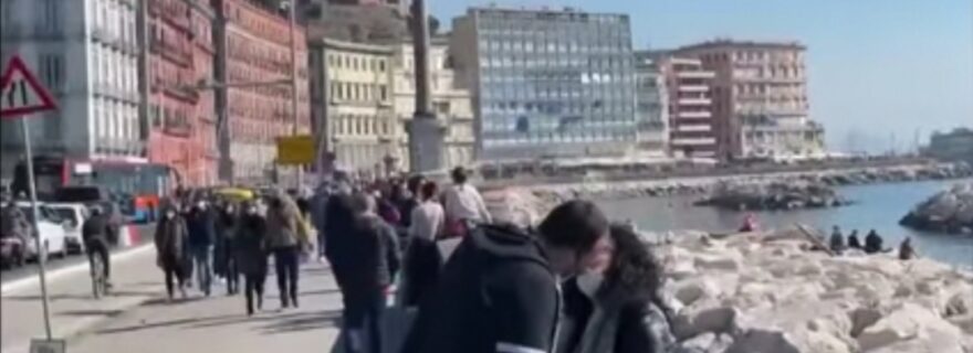 Gli effetti della zona arancione si fanno sentire sul lungomare di Napoli.