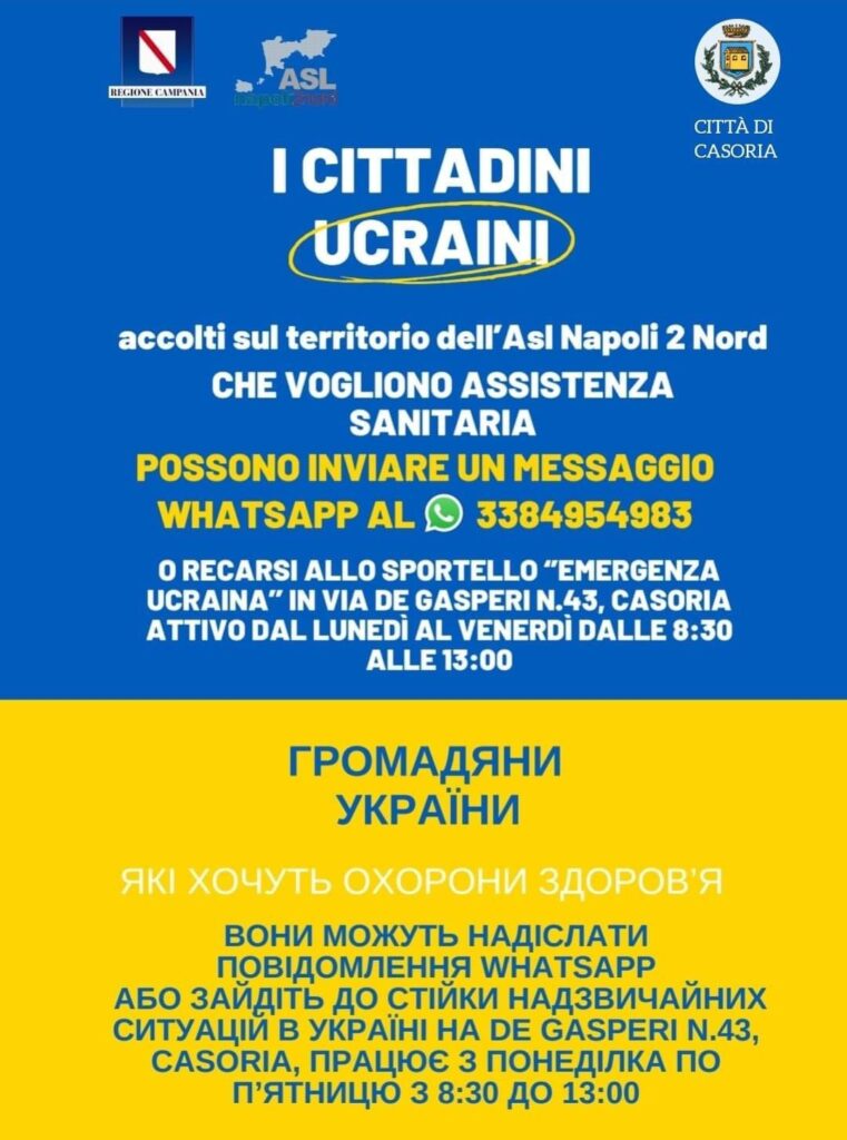 È stato attivato anche il servizio whatsapp mediante il quale i cittadini ucraini potranno richiedere di essere contattati per ricevere assistenza.