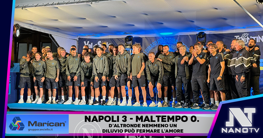 DIMARO FOLGARIDA – Il popolo del Napoli è stato più forte dell’acqua caduta copiosamente su Dimaro Folgarida. Ma, come si dice, “presentazione bagnata, presentazione fortunata” e, allora, ecco che la Val di Sole ha ballato fortissimo sulle note di canzoni iconiche per il popolo napoletano, con la voce di “Decibel” Bellini a stimolare (ma non ce n’era bisogno) i tantissimi tifosi presenti.