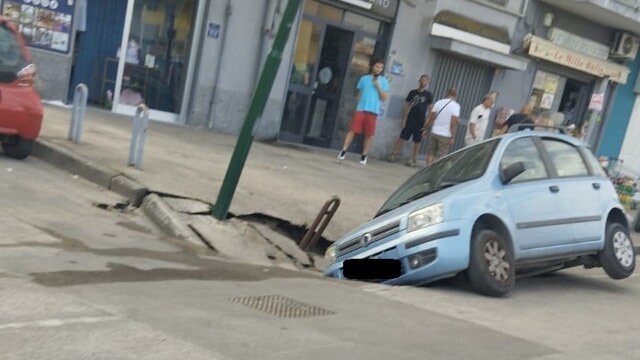 Sul posto sono intervenuti prontamente i vigili del fuoco, che hanno recuperato l’auto intrappolata nella voragine e avviato le prime operazioni di messa in sicurezza dell’area. L’incidente ha provocato il blocco del traffico, con pesanti ripercussioni sulla viabilità della zona, già congestionata durante le prime ore della mattinata.