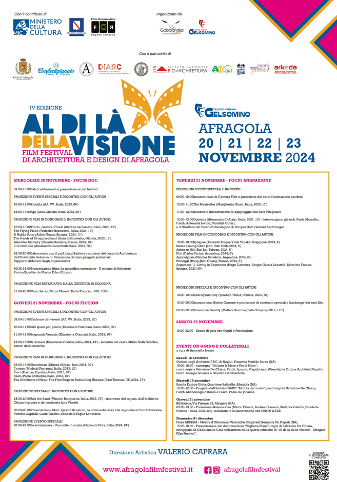 Ai nastri di partenza la quarta edizione dell’Afragola Film Festival “Al di là della visione – Film Festival di Architettura e Design” che rappresenta un appuntamento imperdibile per cineamatori in quanto coniuga architettura, design e opere audiovisive.
