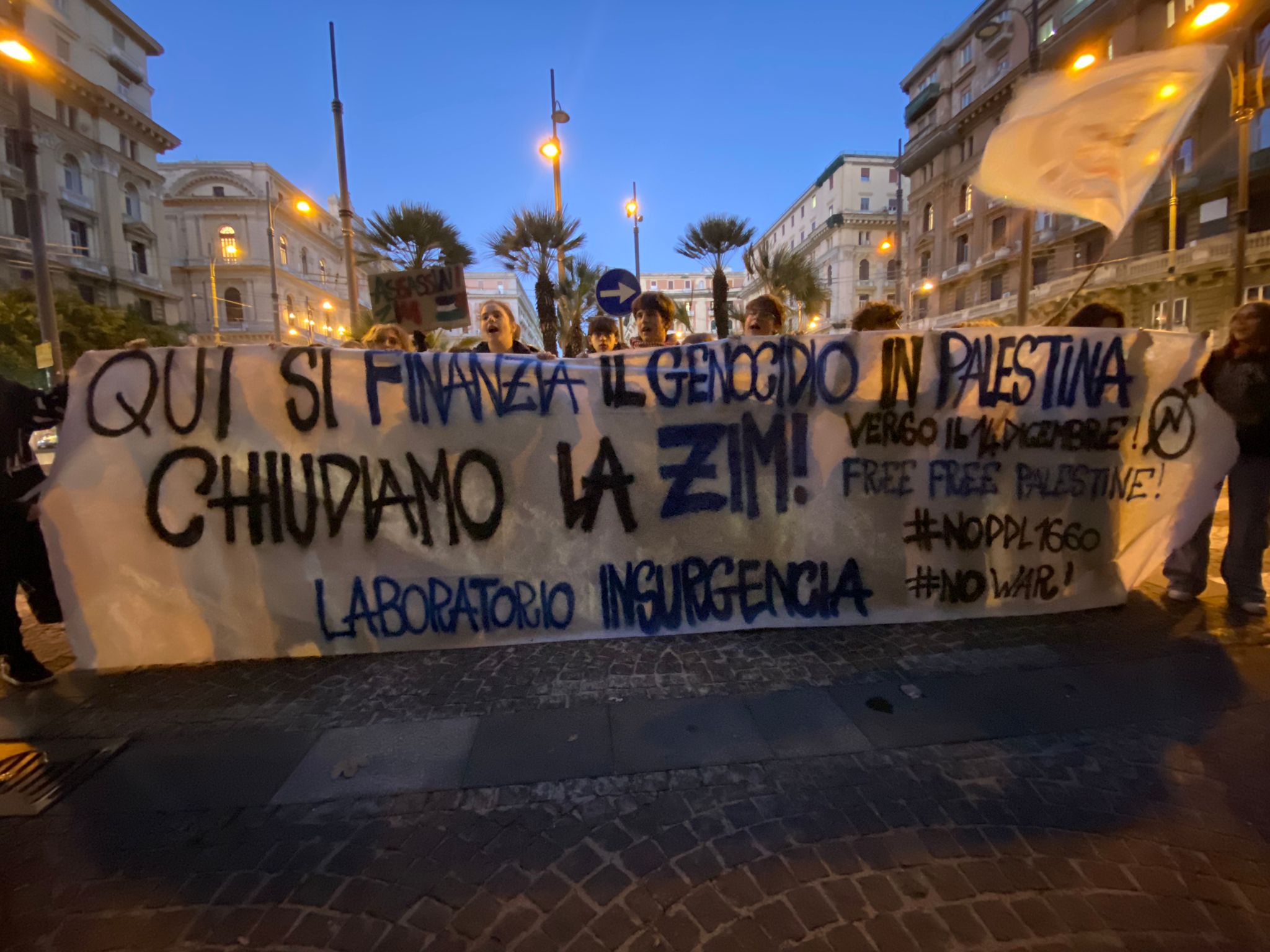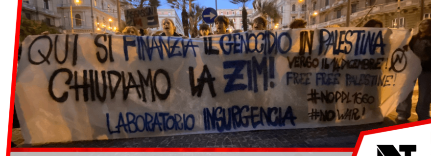 Attivisti del Laboratorio Insurgencia e Coordinamento Kaos Ieri a piazza Bovio hanno presidiato gli uffici della ZIM, azienda israeliana con importanti ruoli a livello logistico nel trasporto di armi verso Israele.