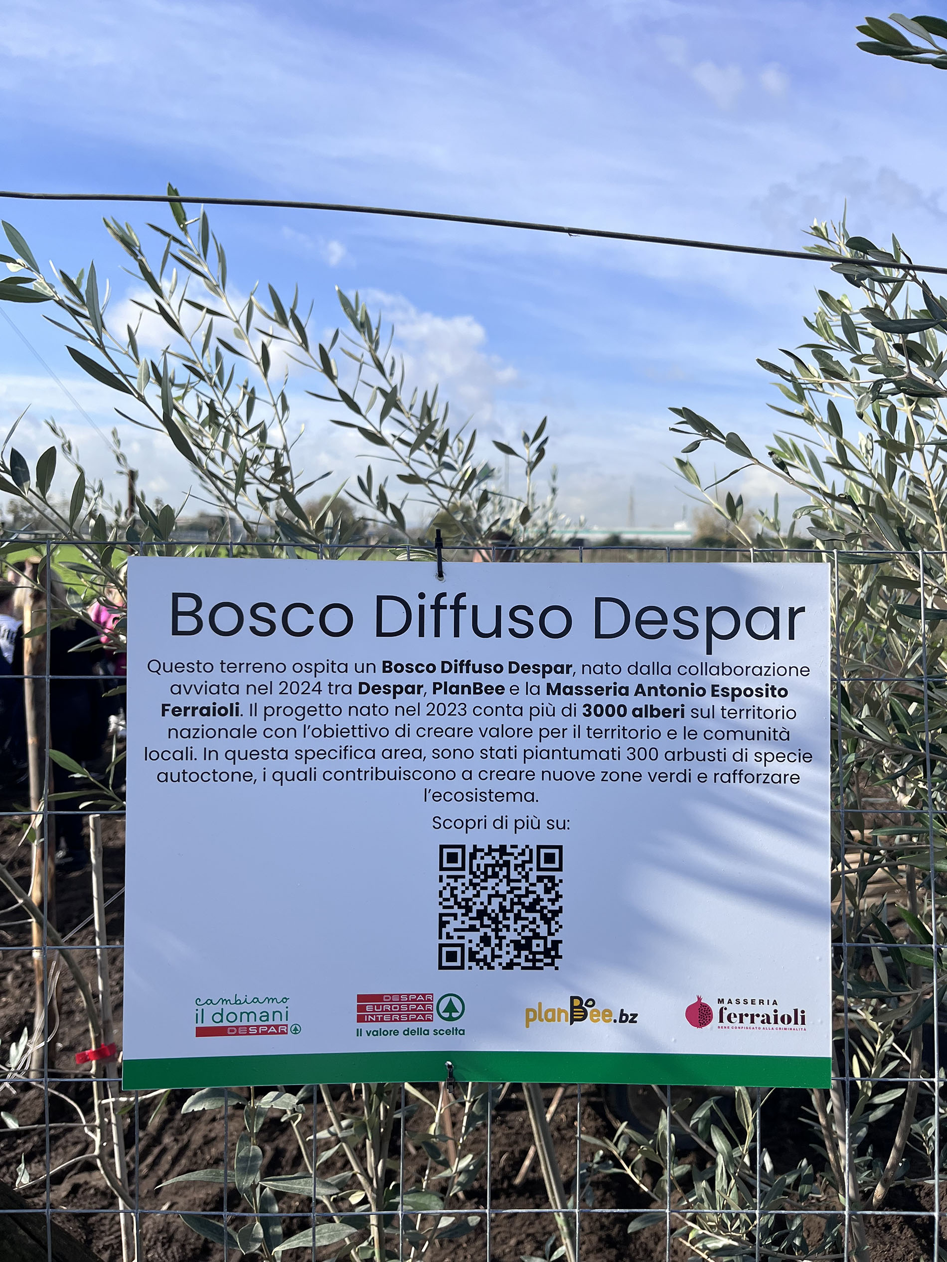 L’iniziativa in Campania è parte del più ampio progetto “Bosco Diffuso Despar” che coinvolge la sede centrale del consorzio Despar Italia e le sei aziende associate. Il progetto è realizzato in partnership con PlanBee, la prima piattaforma in Italia interamente dedicata a progetti di cura e tutela dei beni comuni, e si inserisce nell’ambito del progetto “One Tree Planted” di Spar International, organizzazione di cui Despar Italia fa parte, che ha già visto piantare oltre 90.000 alberi in 9 paesi dell’universo Spar, a cui si aggiungeranno i nuovi 1600 di Despar Italia e dei suoi soci. La messa a dimora dei nuovi alberi viene realizzata in collaborazione con enti e associazioni non profit locali specializzate in interventi di rigenerazione ambientale e con una forte impronta sociale che hanno già ampia esperienza sul campo e un solido radicamento territoriale.
