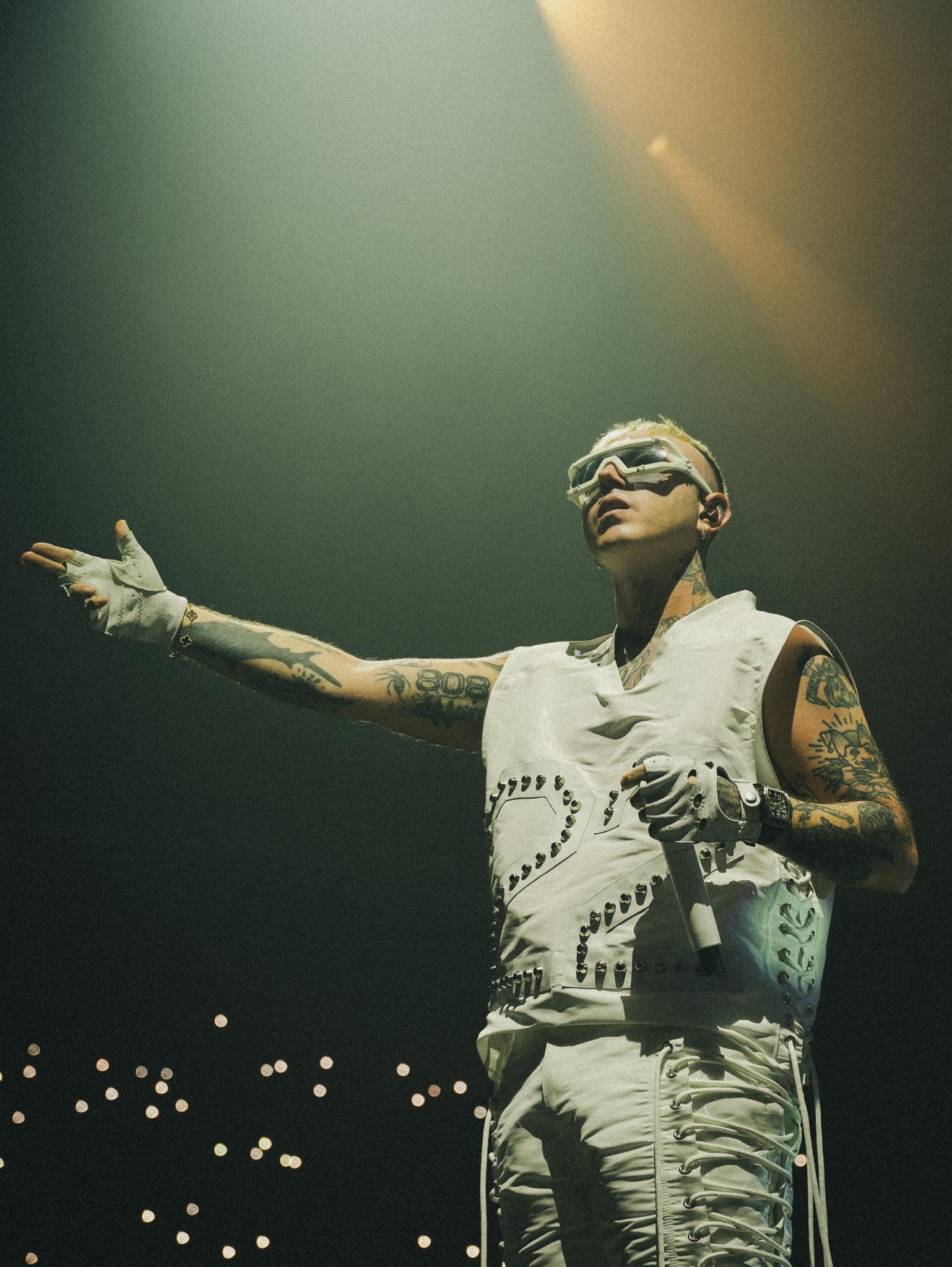 Progettato da Davide Pedrotti, head creative, ed Eleonora Peronetti, scenografa, il palco -dalla forma di diamante, studiato per offrire una visuale perfetta da ogni angolazione- rappresenta la zona di conforto dell’artista, invasa e frammentata dai disturbi della vita esterna, e dove Lazza si muove tra mondi eterei e sognanti rappresentati nei display LED, sfidando la fisicità della scena. Se la progettazione del lighting design unisce matericità e leggerezza, enfatizzando sia la solidità della scenografia che atmosfere oniriche, i contenuti video -curati dal collettivo Highfiles Visuals– amplificano il messaggio artistico trasformando ogni brano in un viaggio nella locura di Lazza. In linea con l’immaginario post apocalittico richiamato dall’allestimento è anche la visione moda dello show, dove tutti i capi custom (nei colori del bianco e nero) sono firmati da Domenico Orefice.