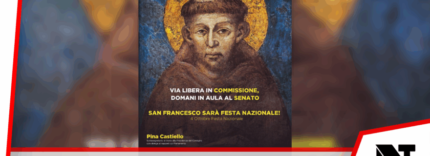 Con la legge, il 4 ottobre diventerà una giornata di festa solenne anche dal punto di vista istituzionale. “Festeggiare San Francesco – ha concluso Castiello – è un tributo doveroso ad un Santo che, specie nei tempi tormentati che viviamo, rappresenta un faro illuminante da elevare a riferimento costante”.