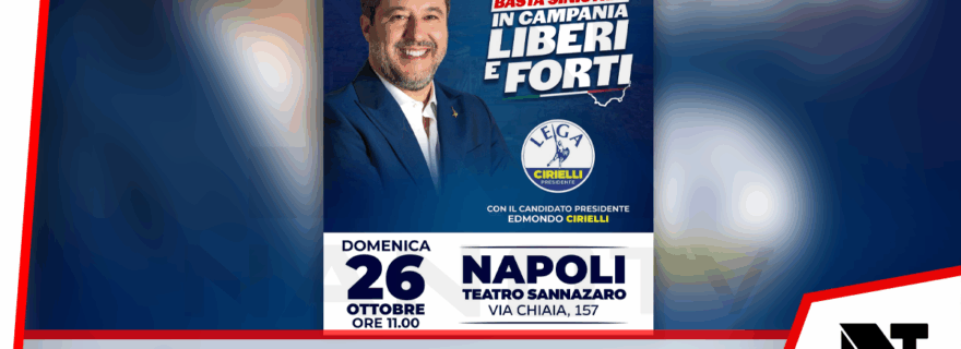 Alle ore 11:00 interverranno il vicepremier e leader della Lega Matteo Salvini e il candidato Governatore Edmondo Cirielli, che daranno il via ufficiale alla campagna elettorale del partito in vista delle prossime elezioni regionali in Campania.